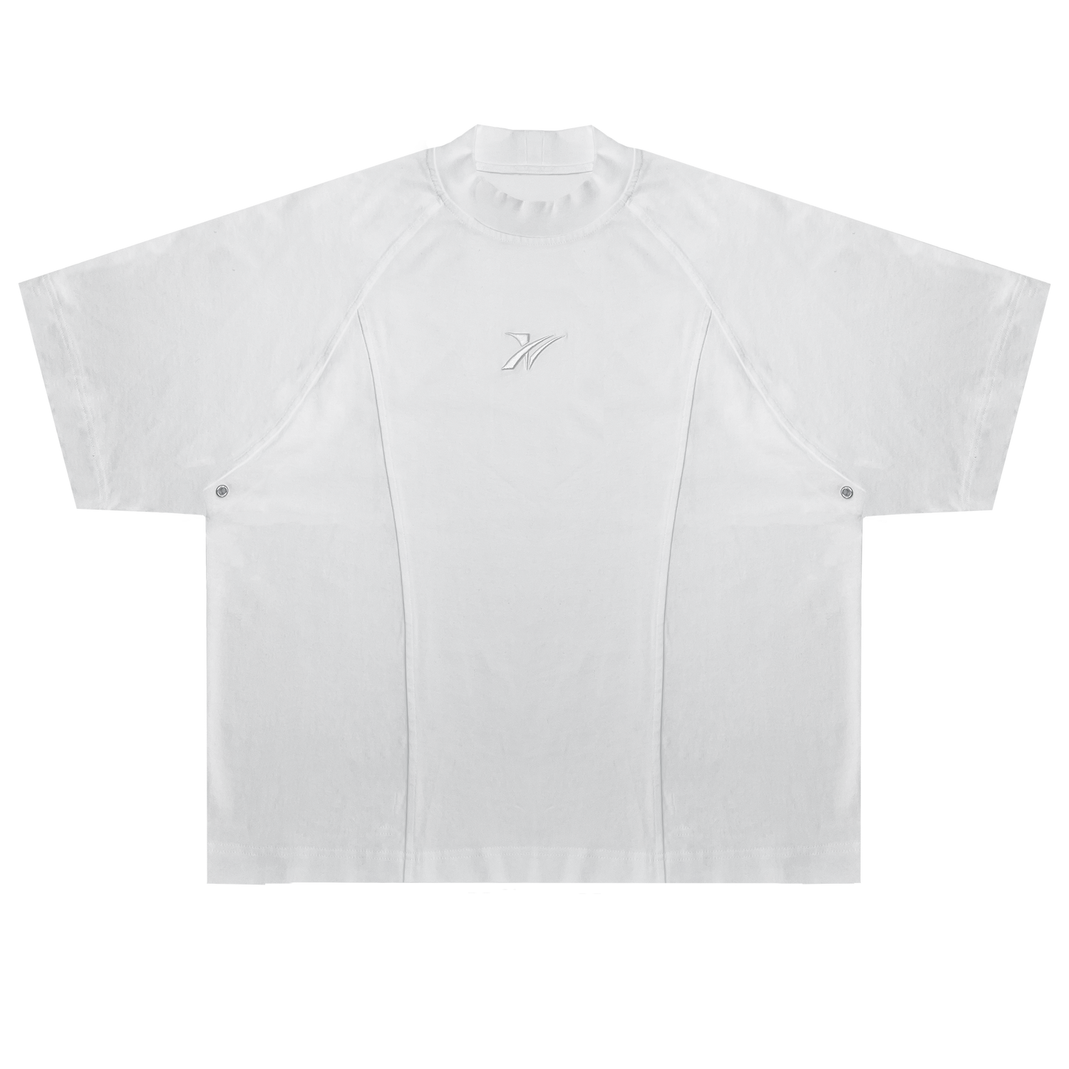- Finished with a double-thick neckline, tonal embroidery, and metal venting eyelets at the underarms.